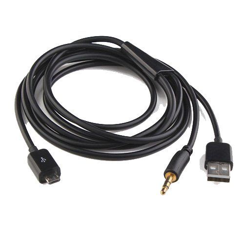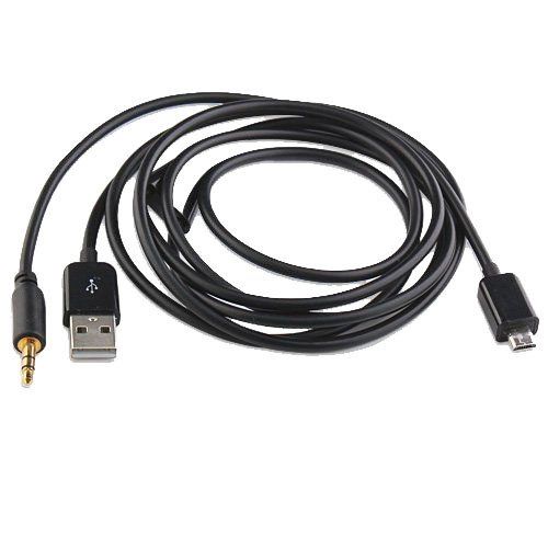 Kabel Micro USB to AUX 3.5mm + USB Male Audio Splitter untuk smartphone. Anda dapat menggunakan kabel ini untuk mendengarkan lagu dari smartphone ke perangkat yang menggunakan AUX sembari charging menggunakan kabel Micro USB.