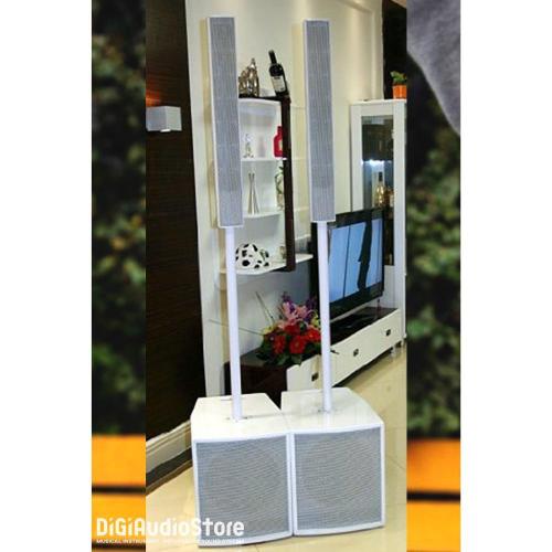 The full-range column speaker is housed in an elegant and sturdy aluminum alloy chassis. The subwoofer cabinet is made of high quality plywood coating with glossy PU paint.