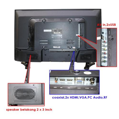 menghasilkan sebuah gambar yang menakjubkan,kaya warna,dan tajam.memiliki sudut pandang 176 x 176 ° fitur yang dimiliki oleh TV Polysonic ini,seperti USB Movie,slot HDMI,Component Video,PC input/VGA,coaxial.
