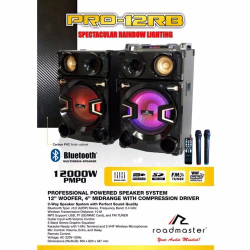 Roadmaster PRO-12RB adalah Professional Powered Speaker System dengan menggunakan 12" Woofer, 4: Midrange dengan Compression Driver, yang height="315" src="https://www.youtube.com/embed/mn42aweWqe0" width="560">