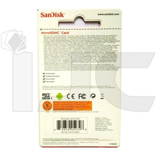 SanDisk Micro SD berkapasitas 16GB ini merupakan kartu memori terbaik untuk menyimpan musik, video, foto, game, file, dan aplikasi pada ponsel Anda. Kartu memori ini memiliki rating class 4 yang menunjukkan produk ini mempunyai kemampuan tulis minimal 4 MB/detik (berdasarkan spesifikasi SD 2.0). Dengan kapasitasnya yang besar, kartu memori ini dapat menampung ribuan lagu, foto maupun video dengan total durasi hingga puluhan jam.