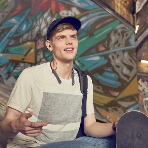 Kabel tetap rapi dan tidak mengganggu neckband berkat pengatur panjang-pendeknya kabel.