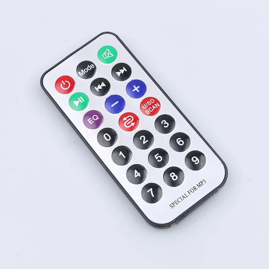 * Mendukung USB / TF card switch, PREV, NEXT, fast forward, fast rewind, volume, EQ, play / pause, stop, single repeat, mute, shutdown dan direct election.